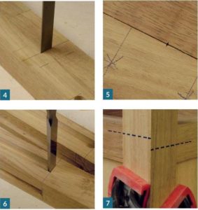 5. Line up the chisel indents. The lines marked with an ‘X’ are the stop lines, so there is no need to mark out for the second row of grooves.
