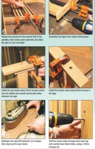 Drill two screw holes through each back leg and counter-bore these holes, using a 10mm Forstner bit.
